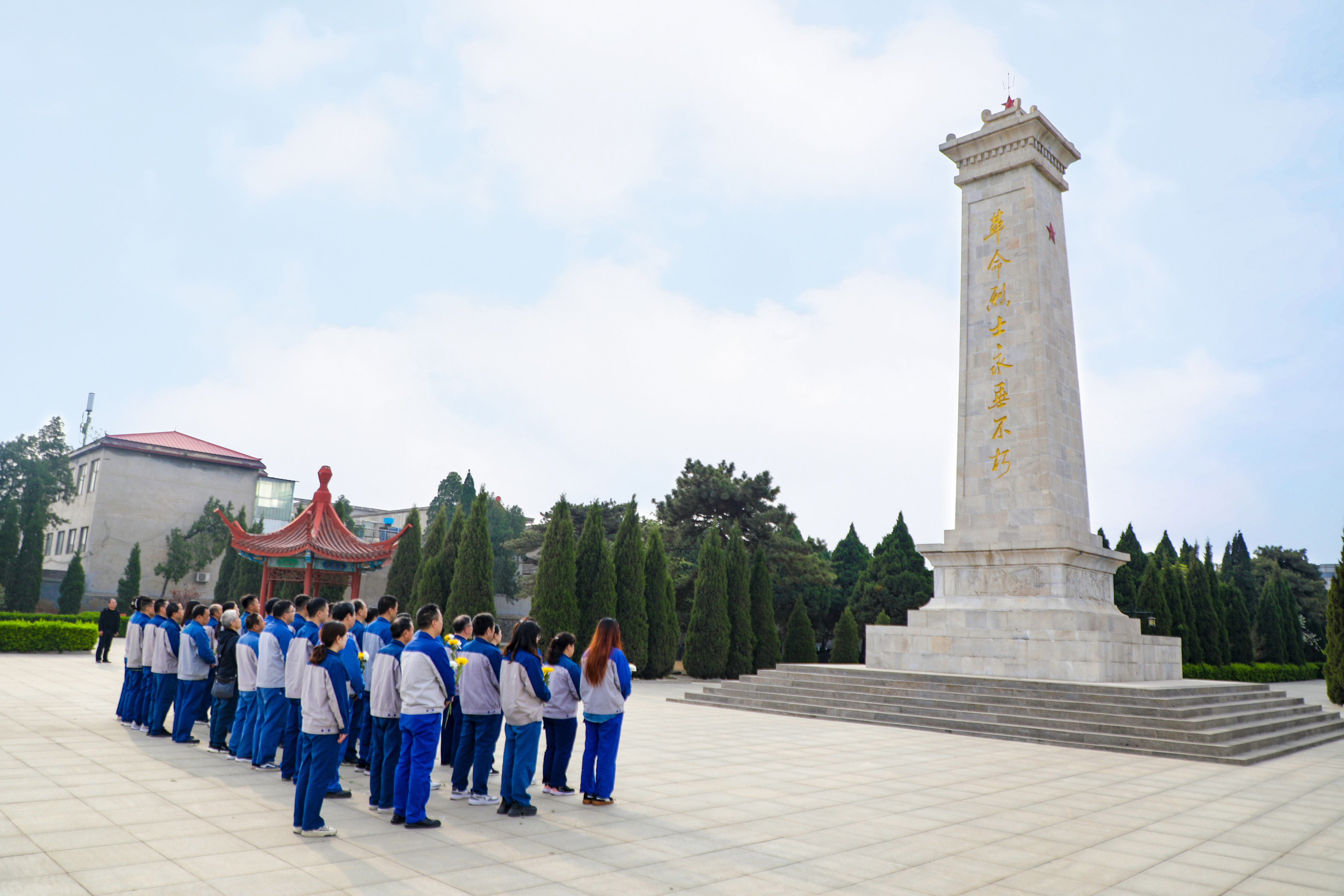 禮畢,全體人員依次前往紀念碑敬獻鮮花,向革命英烈致以崇高的敬意。